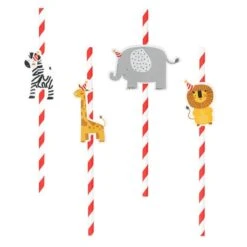 Diese Trinkhalme mit 4 verschiedenen Motiven sind sehr hilfreich für die kleinen Gäste und dekorieren den Tisch zugleich im Thema Safari.