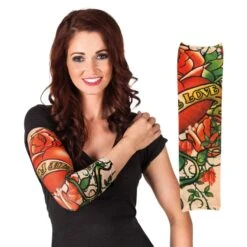 Sie sind auf der Suche nach tollem Kostümzubehör, welches alles andere als gewöhnlich ist und Sie aus der Menge heraushebt? Dann liegen Sie mit dem ausgefallenen Tattoo-Ärmel goldrichtig! Dieser besteht zu 100 % aus Nylon, ist binnen Sekunden übergestülpt und wirkt täuschend echt. Mit der Aufschrift „True Love“ sowie der dornigen Rose sieht er nicht nur supercool aus, sondern lässt sich sogar mit einer Vielzahl an Outfits kombinieren. Ganz gleich, ob stürmischer Rebell, bärtiger Rocker oder Mamas Liebling – die Armstulpe ist in jedem Fall das absolute Highlight Ihrer Verkleidung. Und das Beste daran: Nach der Party können Sie sie ebenso schnell und unkompliziert wieder abnehmen, während im Vergleich zu richtigen Tattoos keine lästigen Narben zurückbleiben. Also einfach überziehen und los geht die wilde Sause.