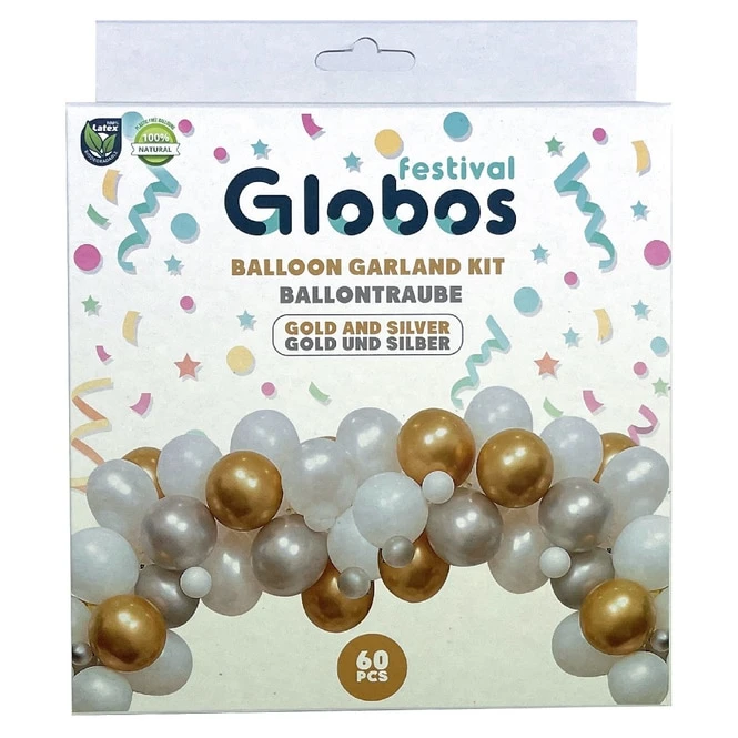 - Lieferumfang: 1x DIY Ballongirlande, bestehend aus 60 Ballons, Band und Klebepunkten