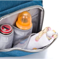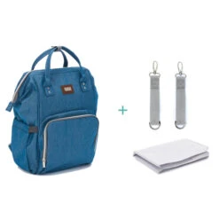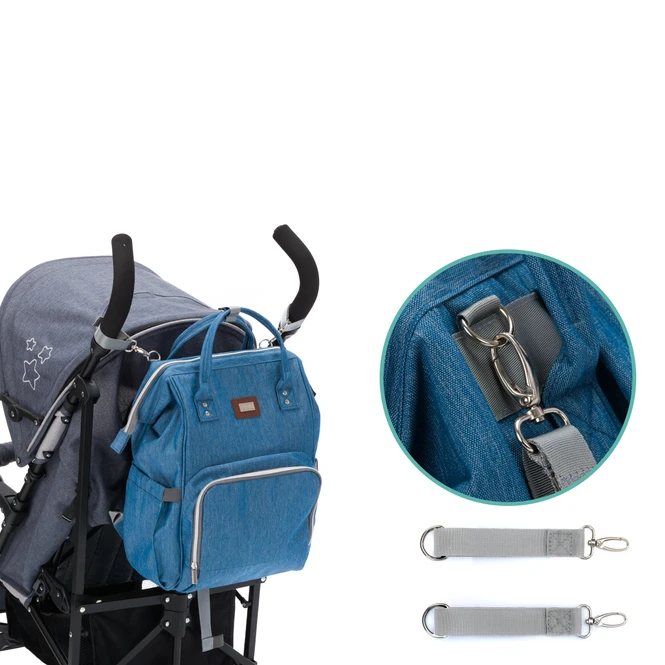 - Der Wickelrucksack lässt sich dank der zwei mitgelieferten Gurte am Kinderwagen befestingen