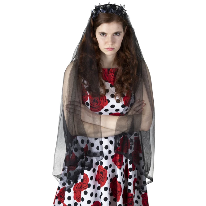 All diejenigen, die auf der Suche nach extravagantem Kostümzubehör sind, welches sich sowohl an Fasching als auch Halloween einsetzen lässt und überdies ein echter Hingucker ist, werden den geheimnisvollen Haarreif lieben! Dieser zieht durch das düstere Design nämlich binnen Sekunden alle Blicke auf sich und eignet sich somit hervorragend, um vollkommen nach Belieben in Szene gesetzt zu werden. Er kommt mit einer Reihe gruseliger Totenköpfe sowie einem mystischen Schleier daher, der 127 cm lang und das schaurige i-Tüpfelchen einer Vielzahl an Kostümen ist. Ganz gleich, ob zur wandelnden Toten, schwarzen Fee oder toten Braut – mit dem fürchterlich-schönen Totenkopf-Schleier sind der Fantasie keinerlei Grenzen mehr gesetzt. Also schnappt ihn euch und kombiniert munter drauflos!
