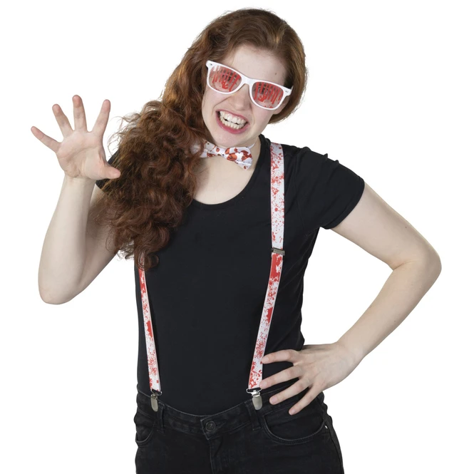 Du bist auf der Suche nach schaurig-schönem Kostümzubehör und bevorzugst Stücke, mit denen du nicht viel Aufwand betreiben musst? Dann wirst du das blutige Halloweenset lieben! Dieses ist nämlich genau das Richtige für echte Gruselfans und solche, die den Lieben einmal einen gehörigen Schrecken einjagen möchten, ohne viel Aufwand zu betreiben. Es ist 3-teilig und beinhaltet eine Brille, eine Fliege sowie Hosenträger, die das grausige Outfit ideal komplettieren. Somit benötigst du nichts weiter, um maximalen Effekt an der Gruselparty zu erzielen und kannst gleich drauflos feiern. Also schnapp‘ dir das vielseitig einsetzbare Set und lass‘ deiner blutigen Fantasie freien Lauf!