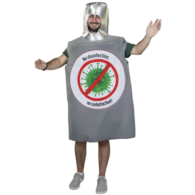 All diejenigen Faschingsfans, die auf der Suche nach einem einfallsreichen Outfit sind, mit dem sie nicht nur ordentlich auffallen, sondern darüber hinaus auch auf das derzeitige Weltgeschehen Bezug nehmen können, werden das supercoole Kostüm – Desinfektionsmittel lieben! Mit diesem verwandelt ihr euch nämlich binnen Sekunden in eines der begehrtesten Artikel des Jahres 2020: in die seitdem unverzichtbare Desinfektionsflasche, die neben Toilettenpapier, Mehl und Hefe zum absoluten Must-have geworden ist. Es kommt als Einteiler in Einheitsgröße für Erwachsene daher und lässt sich kinderleicht über die eigene Kleidung ziehen. Da es auch genau das Richtige Faschingskostüm für Paare und Gruppen ist, könnt ihr es vollkommen nach Belieben in Szene setzen. Also einfach überziehen und – mit Abstand – den besten Partyspaß erleben!