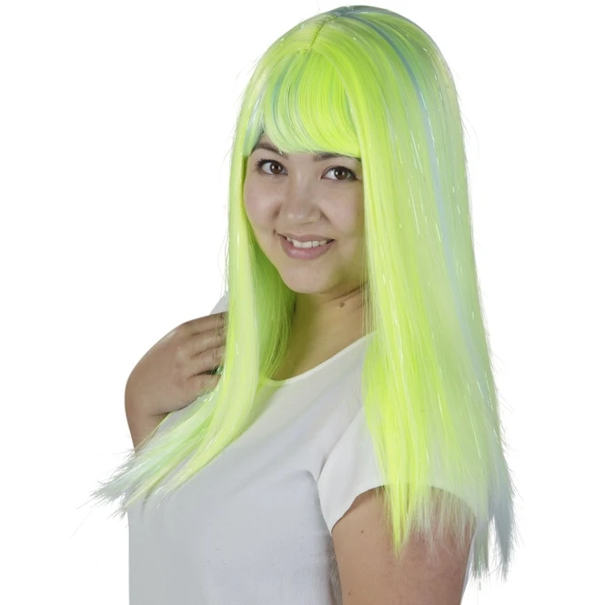 Du magst es, an Fasching in die verrücktesten Rollen zu schlüpfen und bist daher auf der Suche nach extravagantem Kostümzubehör, mit dem du deiner Fantasie freien Lauf lassen kannst? Dann wirst du dieses lieben! Die knallige Langhaarperücke zaubert dir in Sekundenschnelle eine neongrüne Haarpracht, ohne dass deine Haare echte Farbe zu befürchten haben. Sie besteht zu 100 % aus Polyester, ist brustlang und lässt dich an der Kostümparty problemlos aus der Menge herausstechen. Aus diesem Grund ist die tolle Perücke genau das Richtige für all diejenigen, die nicht genug von extravaganten Outfits bekommen. Also schnapp‘ sie dir und kombinier‘ munter drauflos!