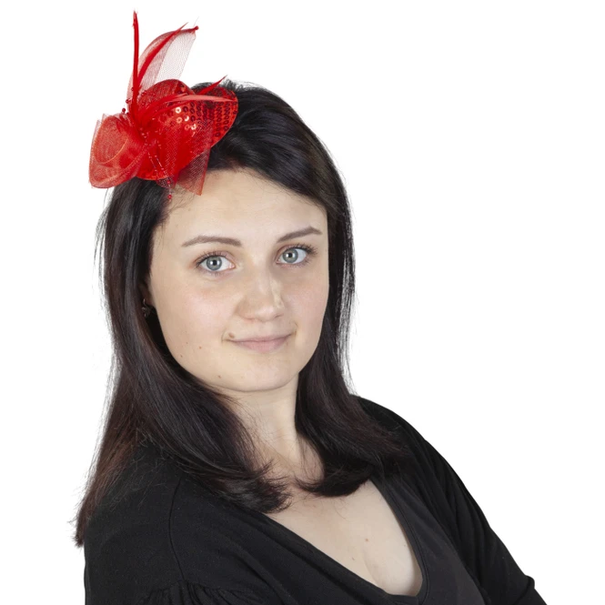Mini-Hut – mit Pailetten, Tüll und Federn – rot