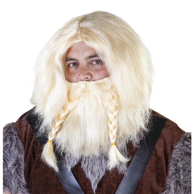 Sie möchten Sich in der närrischen Zeit in einen waschechten Wikinger verwandeln und sind daher auf der Suche nach dazu passendem Kostümzubehör? Dann darf Ihnen die supercoole Perücke keineswegs fehlen! Diese zaubert Ihnen im Handumdrehen eine blonde Wallemähne sowie einen imposanten Bart, an welchem sogar Zöpfe angebracht sind. Sie kommt in Einheitsgröße für Erwachsene daher und ist die ideale Komplettierung Ihres Faschingskostüms. Also schnappen Sie sich die tolle Wikingerperücke und erleben Sie wilde Partynächte!