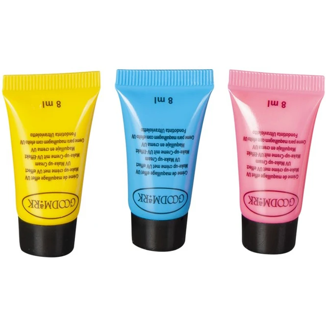 - Lieferumfang: 1 Set, bestehend aus drei Farben, drei Applikatoren, einem Schwämmchen sowie einer Schminkanleitung