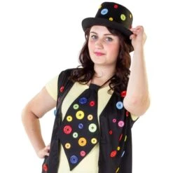Sie sind auf der Suche nach außergewöhnlichem Kostümzubehör, mit dem Sie Ihr Outfit an Fasching binnen Sekunden aufwerten und individuelle Akzente setzen können? Dann werden Sie dieses Stück lieben! Der niedliche Zylinder ist ein echter Hingucker, welcher sich mühelos mit einer Vielzahl an Kostümen kombinieren lässt. Er besteht zu 100 % aus Polyester, ist sowohl für Damen als auch für Herren erhältlich und insbesondere aufgrund der farbenfrohe Knöpfe, die liebevoll daran befestigt sind, ein echter Augenschmaus, von dem Sie und Ihre Lieben ganz sicher nicht genug bekommen. Ganz gleich, ob als extraordinärer Designer, verrückter Hutmacher oder schräger Kobold – mit dem tollen Hut sind Ihrer Kreativität in der närrischen Zeit fortan wirklich keine Grenzen mehr gesetzt.